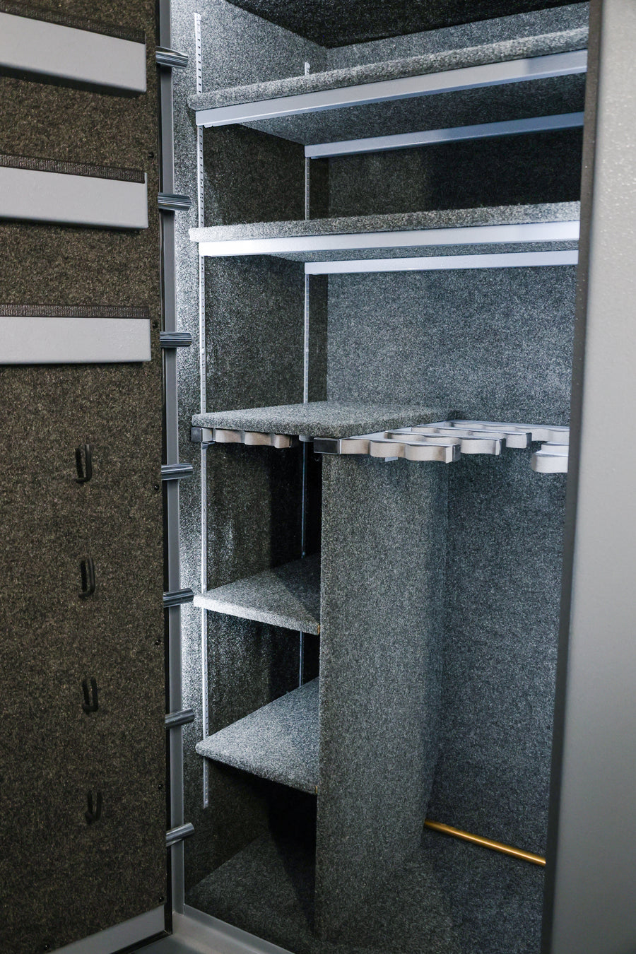 We are the only safe manufacturer to offer our proprietary deep recessed non-drillable key-lock system. Additionally, we provide more customization options than any other company, including body color, trim color, door orientation, carpet color, rack configuration, and more! No other manufacturer can offer the same combination of quality and customizability.