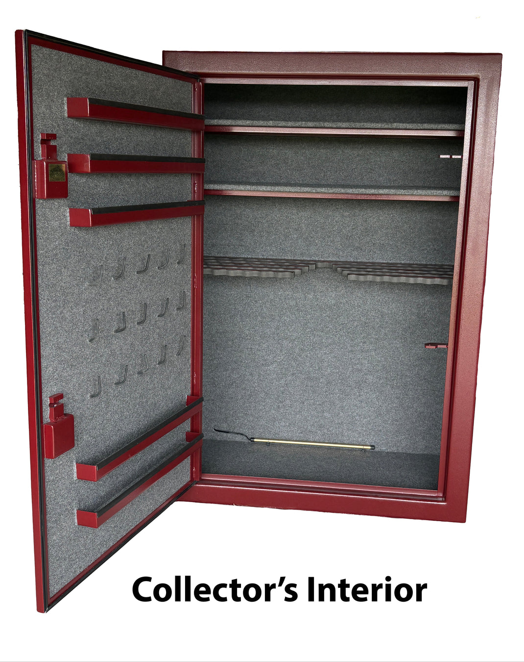 - Our Collector’s Interior is a full width rack to maximize the number of long guns you can store. On our 72″ tall safes, two shelves are included above the rack.